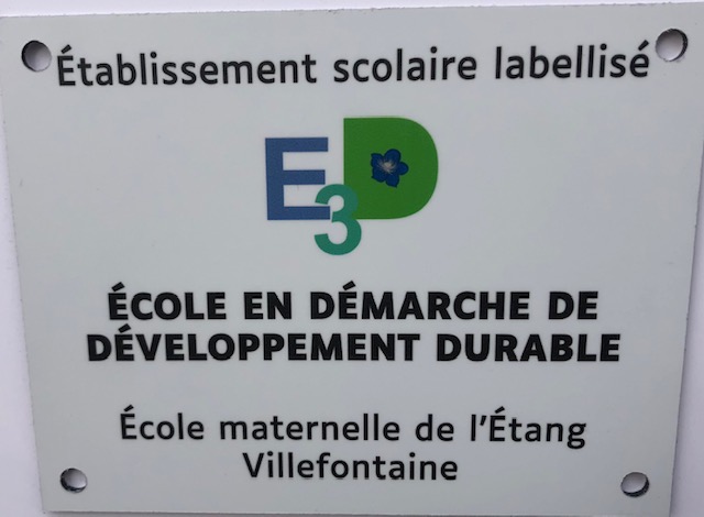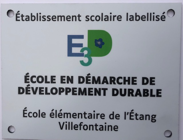 Remise ce mardi 29 mars 2022 d’une plaque « Label E3D », offert par la municipalité, aux écoles de l’étang, à Villefontaine pour valoriser l’engagement des équipes dans ce projet ambitieux contribuant à la formation d’apprentis citoyens éclairés.